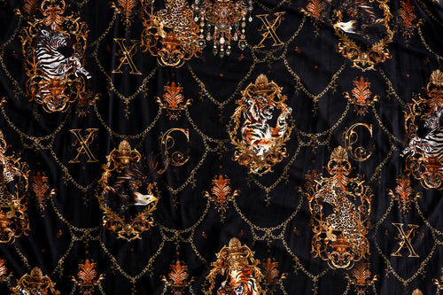 Luxe athleisure wear immersed in wild animalia, the Knights Of Jaggis Table Active Legging With Side Pocket is enwrapped in a classic midnight hue adorned with cascades of dainty chain details, striking portraits of wild majesties, opulent baroque weavings and ornate namesake initialling. Adorning side pocket panelling and anti-pilling technology, these luxury leggings feature an elasticated high waistline, a fitted silhouette, four-way stretch and a full-length cut that dances at the ankle.