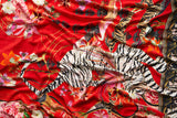 The white tee adorned, The Legend Of Ziba Slim Fit Round Neck T-Shirt sports a striking big cat portrait enveloped in lilac botanicals and hand-embellished crystal. Crafted from soft white cotton, this statement tee features