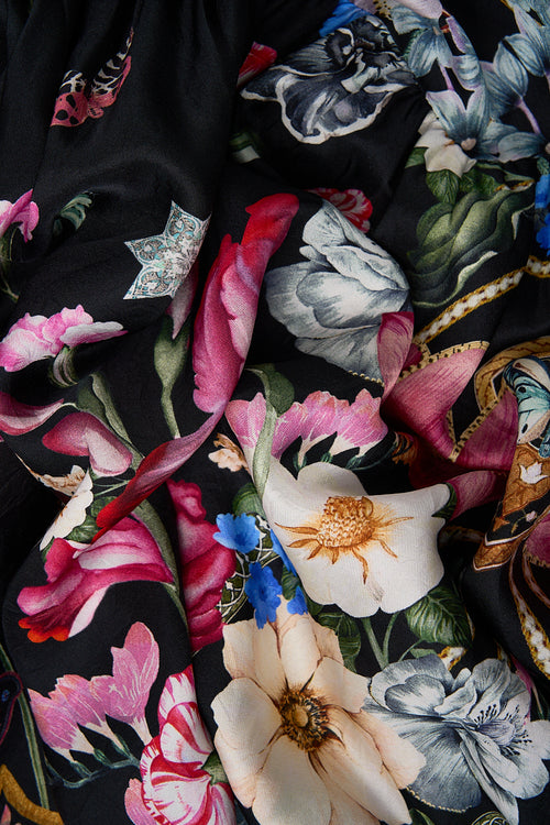 Designed in Australia, The Midnight in Monserrate Waisted Dress With Hem Ruffle celebrates the lush gardens and eclectic nineteenth-century architecture under an exsquisite midnight sky. Lovingly handcrafted, this luxury CAMILLA silk maxi dress features a blousy bodice that cinches into the adjustable waistband. The softly gathered skirt flows from the waistband to create a flowy silhouette accentuated with a deep ruffle hemline.