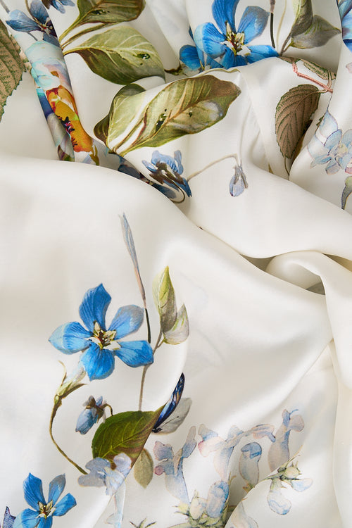 The Botanical Ballads Lace Splice Top With Long Sleeve is a handcrafted silk silhouette designed by our in house artisans. Reimagined in an exclusive limited edition print, our fitted cropped top features beautiful lace splice panels and voluminous long blouson sleeves. Finished with a centre back zip for a structured, form enhancing fit.