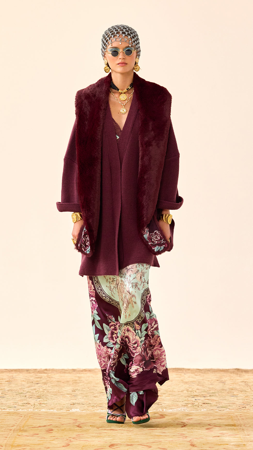 The If These Tiles Could Talk Knit Relaxed Layer With Faux Fur is a handcrafted silhouette designed by our in house artisans. Reimagined in an exclusive limited edition print, this knitted layer is cut in a relaxed shape that falls to a mid length hemline. It features a detachable faux fur shawl for luxurious layering.