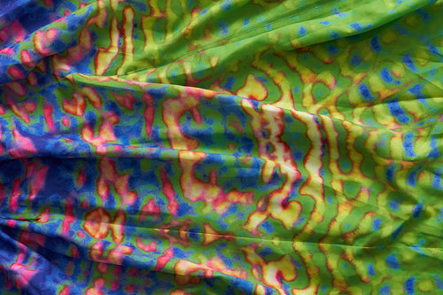 - Bright green print with deep purple hues